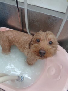 プードルのレオちゃんマイクロバブル入浴しました☆ダックスのチェリーちゃんマイクロバブル入浴しました☆ ポメのそらちゃん
