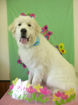 G・ピレニーズのキンタロー君 炭酸泉温浴&カラーリングをしました