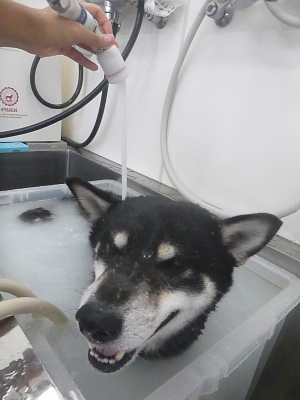 柴犬のブラウン君 マイクロバブル温浴をしました